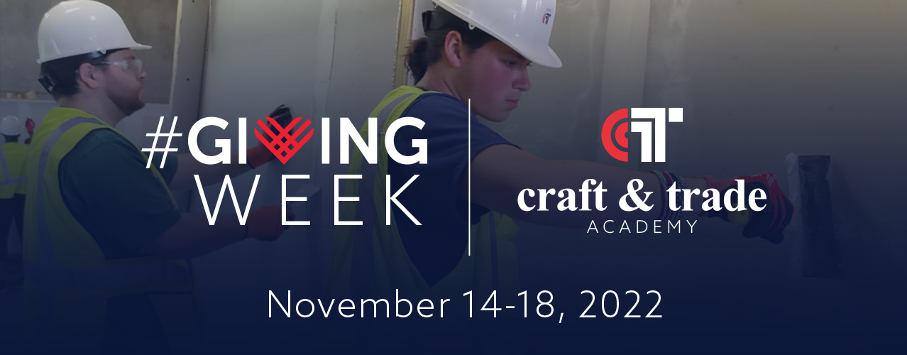 Craft & Trade Academy Giving Week is from Monday, November 14th to Friday, November 18th! It's a week-long challenge to generate support for Craft and Trade Academy apprenticeships, workshops, students, staff, and more. Our goal is to reach $25K by the end of the week. And we need your help to get there!