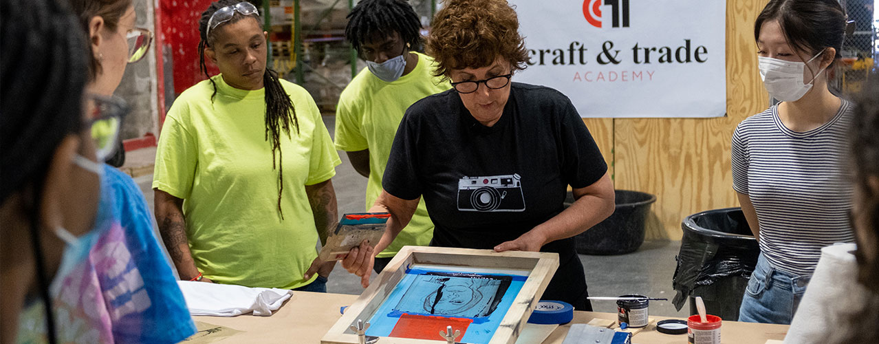 By using ceramic tiles and screen-printing techniques, students challenged their creative talents and created a collaborative mural that reflected the diversity and integrity of the community. Each participant’s screen-printed tiles represent their own vision, values, and personal perspectives. Students gained recognition and a sense of community by working together on and the final mural was exhibited at the Mint Museum Uptown.